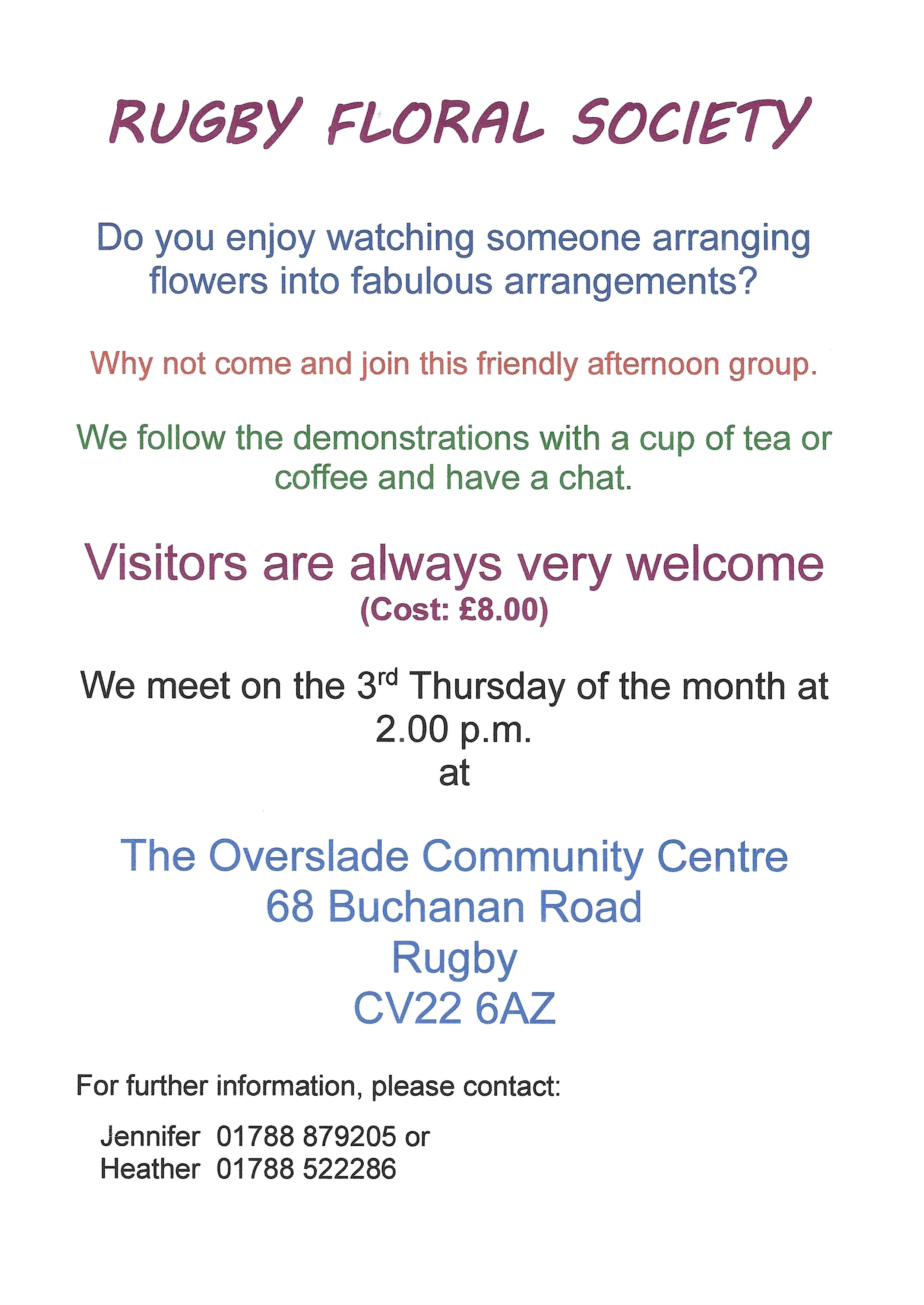 Do you enjoy watching someone arranging flowers into fabulous arrangements? Why not come and join this friendly afternoon group.